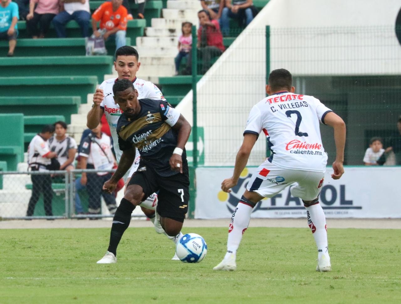 Franco Arizala, Simón Almeida, Guillermo Martínez y Jairo Vélez lucieron como parte del ataque del equipo chiapaneco que fue en los últimos minutos del primer tiempo cuando la embestida cafetalera llegaba a poner nervios en la portería de Gabino Espinoza.